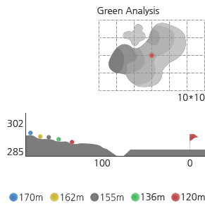 우측 필드를 조심해야 하며, 그린은 3개의 컵존으로 나뉘며