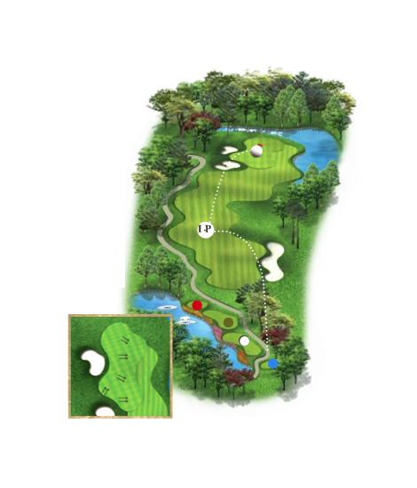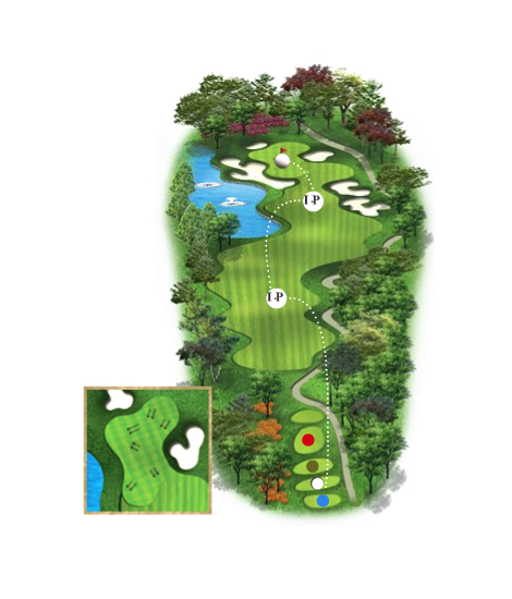 페어웨이에 안착되면 짧은 어프로치로 승부가 가능하므로 굳이 티샷에서 무리한 플레이를 하는 것보다 우드로 공략하는 것이 좋다.