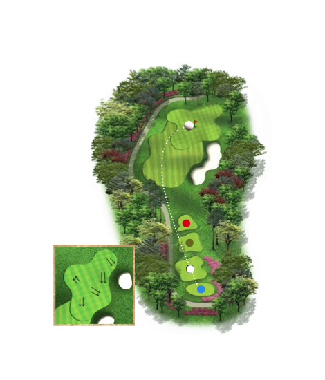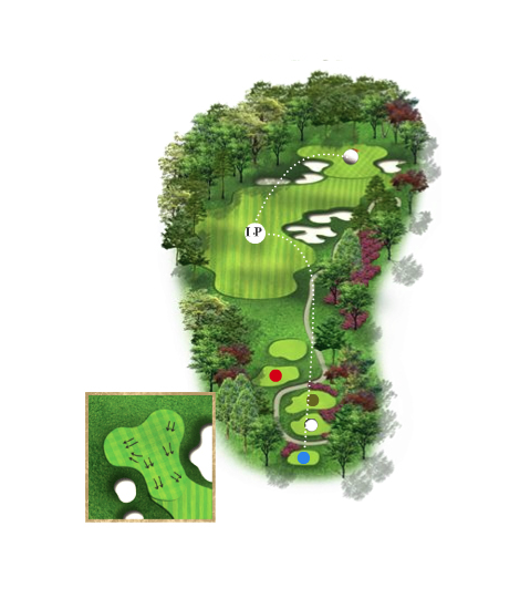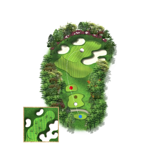 세컨샷은 그린 좌우측과 뒷면의 난이도에 의해 정교한 샷을 요구한다. 조금은 짧은 듯한 어프로치가 필요하다.