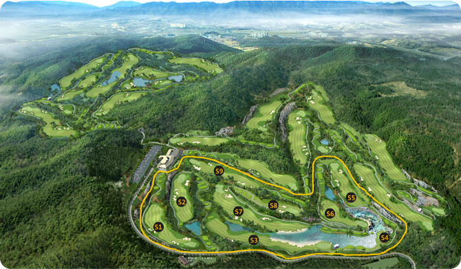 9개의 홀 중 6개의 홀이 대형 레이크를 끼고 있어 암반의 광활함으로 넓고 시원한 라운딩을 즐길수 있는 코스입니다.