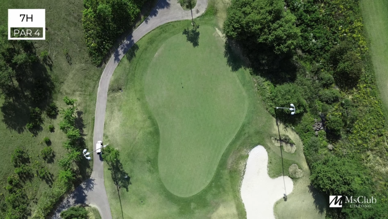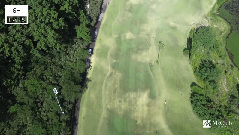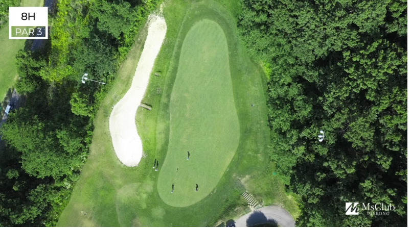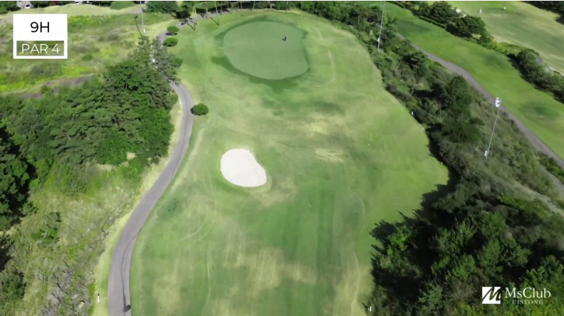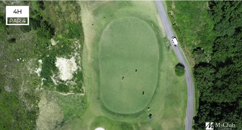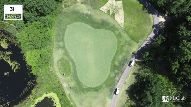 Master Course엠스클럽 중 가장 짧은 PAR3홀이다. 그러나 숏 홀이라 얕잡아 보면 보기를 하기 쉬운 홀이기도 하다.내리막 홀로써 좌측 워터 해저드를 피하면 파온을 할 수 있지만 그린의 난이도가 높아 방심은 금물이다.