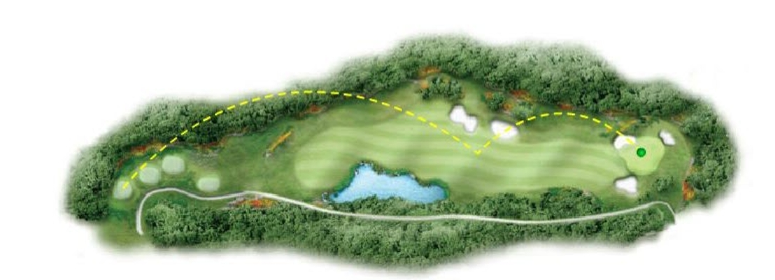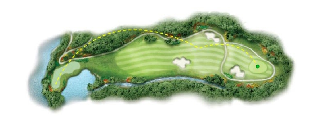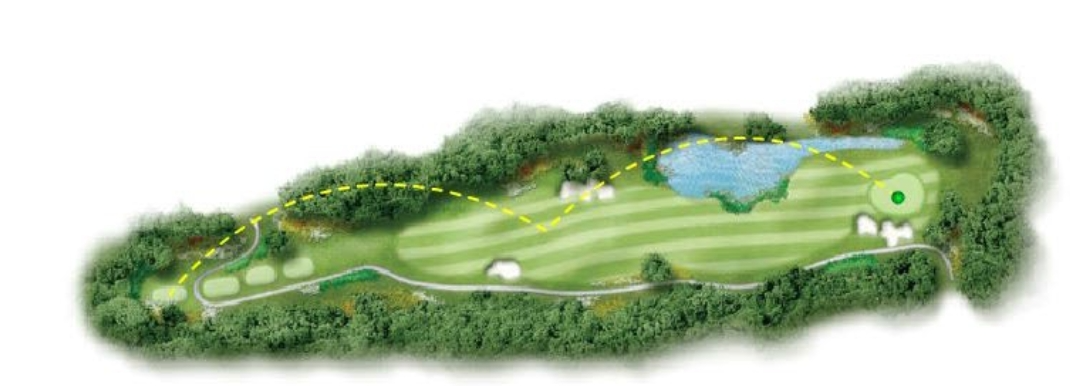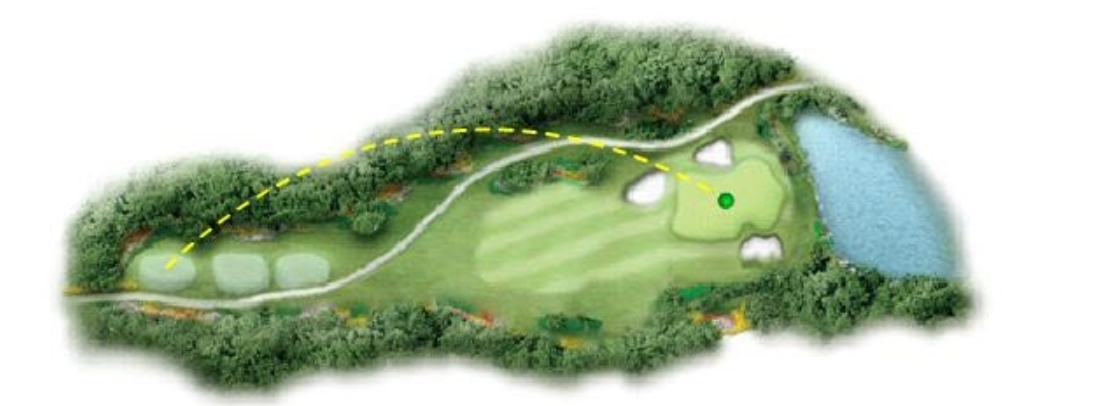 소나무 잡목 숲 내리막에 있는 티잉그라운드에서부터 호수의 언저리 부분을 지나 좌측에 벙커가 있는 아주 긴 그린으로 이어진다. 핀에 가까운 공략이 요구 되는 홀이다.