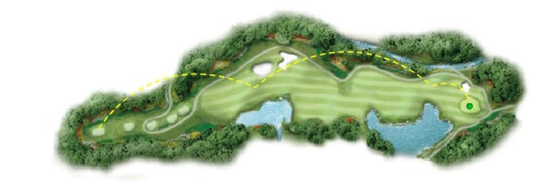 마치 아일랜드를 연상케 하는 티잉그라운드는 호수의 반도에 있으며 드라이브는 우측 벙커를 지나 거대한 워터해저드가 자리 잡고 있기 떄문에 절대적 공략이 요구된다. 좌측 샛강을 끼고 습곡에서 내려온 곳에 높아진 그린이 있다. 좌측으로 페어진 벙커는 많은 볼을 삼킬 것이고 그게 아니라면 샛강으로부터 방해를 받을 것이기에 어려운 마지막 홀이 될 것이다. 티샷은 페어웨이 좌측 공략이 좋다.