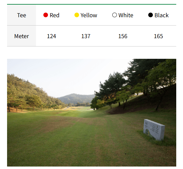 비교적 짧은 Par4홀이라 그린 공략까지는 무난하지만 그린의 난이도는 높은편이며 좌우 오비이다.